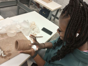 Overview: Students learned how to use the extruder machine to make coils. Afterward, students learned to create coil circles to stack on top of each other. The scratch-and-attach technique was used to attach the coils together.