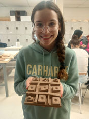 Overview: Students created a slab using the slab roller machine. Afterward, students used a paper template to cut out shapes (4 walls, 1 lid, and a base).
