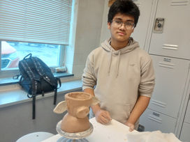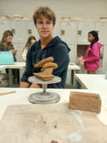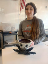 Overview: Students learned to create pinch pot methods forms to make a planter with personality. Two pinch pots were made: One to hold the plant and One for the bust (base).